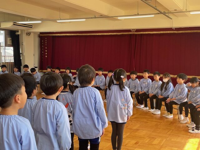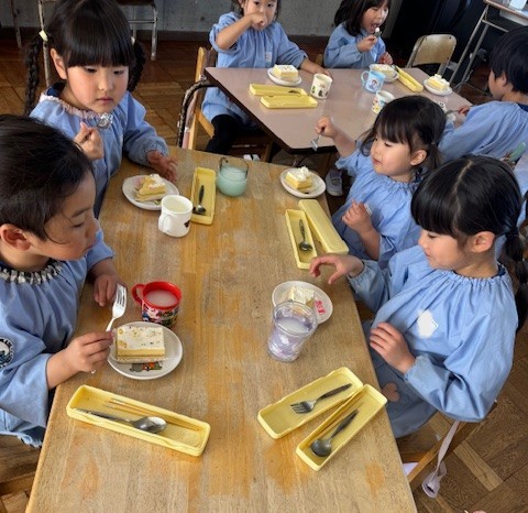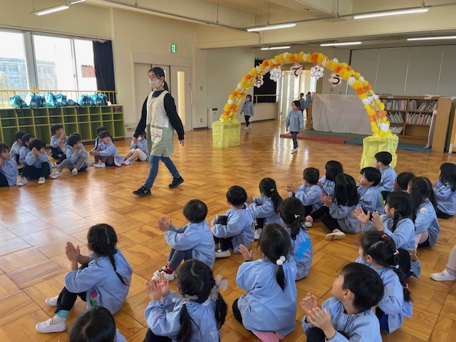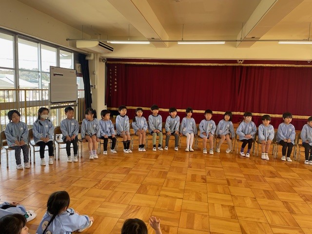 もうすぐ卒園の年長さんのためにお別れ会を行いました。歌を歌ったり、プレゼントを渡したり、みんなでケーキを食べたりと、楽しいひと時を過ごしました。