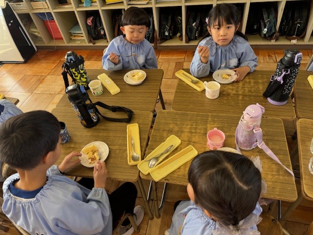 先日掘ったお芋で、お芋パーティーを行い、調理さんが、お芋にアイスクリームを添えてくれました。とってもおいしかったね。