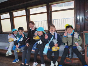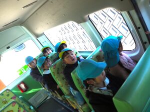 バスの中で、担任の先生から「たけのこ」の本を読んでもらい、少し勉強もしました。