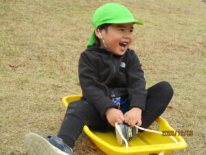 そりに乗るのが初めての子たちは、行きのバスの中では「怖いよぉ」と言っていましたが、いざ始まってみると楽しそうに
