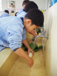 収穫して食べてみました。食べれない子もいましたが、普段野菜が嫌いな子も「おいしい」と言って