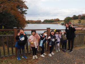 みんなで堀内公園にでかけました。この日は、学年に関係なく縦割りでチーム分けをしました。