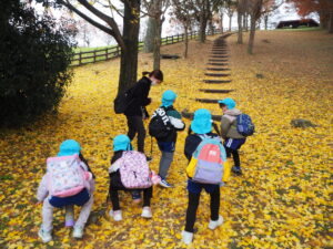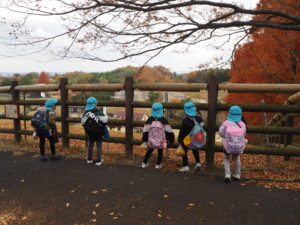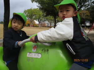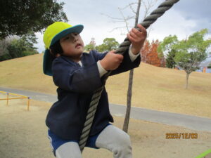 その後は、公園の遊具で遊んだり、落ち葉やドングリを拾って遊びました。