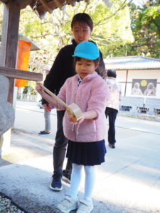 先生に参拝の仕方を聞き、静かにしっかり参拝できました。