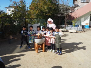 クラスのお友だちと一緒に食べるお餅は美味しかったね。