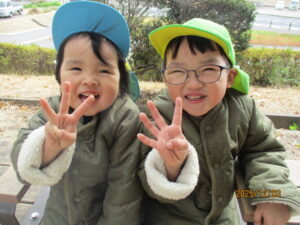 年長児と年少児が園外保育に出かけました。寒さに負けず、元気いっぱい遊びました。