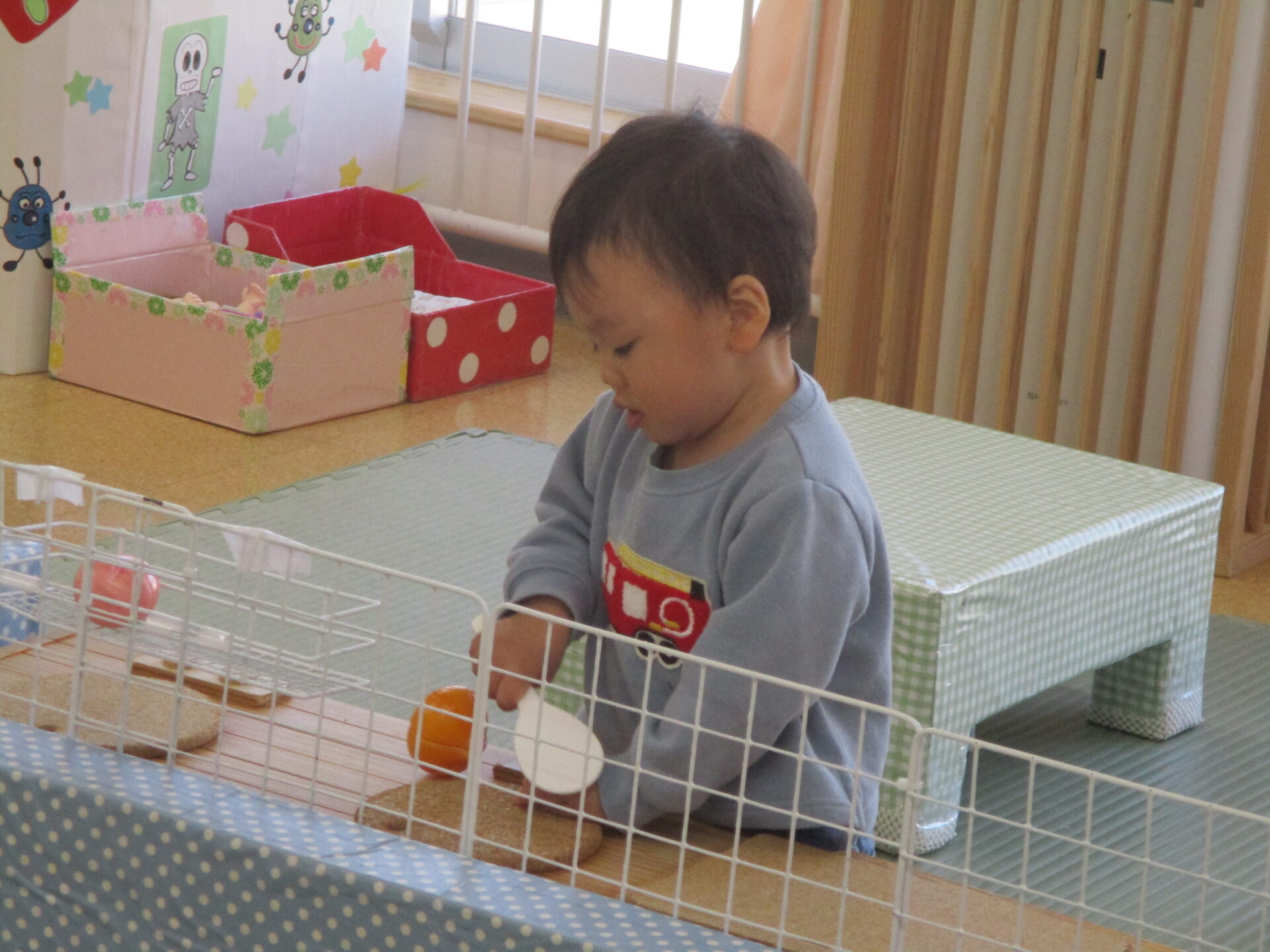 天気の良い日は外で過ごすこともありますが、室内に入ると好きな遊びを見つけて楽しみます。