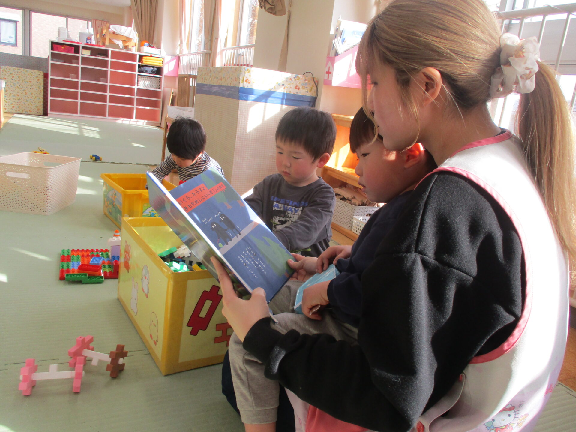さくらくみに実習の先生が入ってくれています。丁寧にお話しして聞いてくれる先生は大人気のようです。たくさん子ども達と触れ合って学んで頂けたらいいですね。