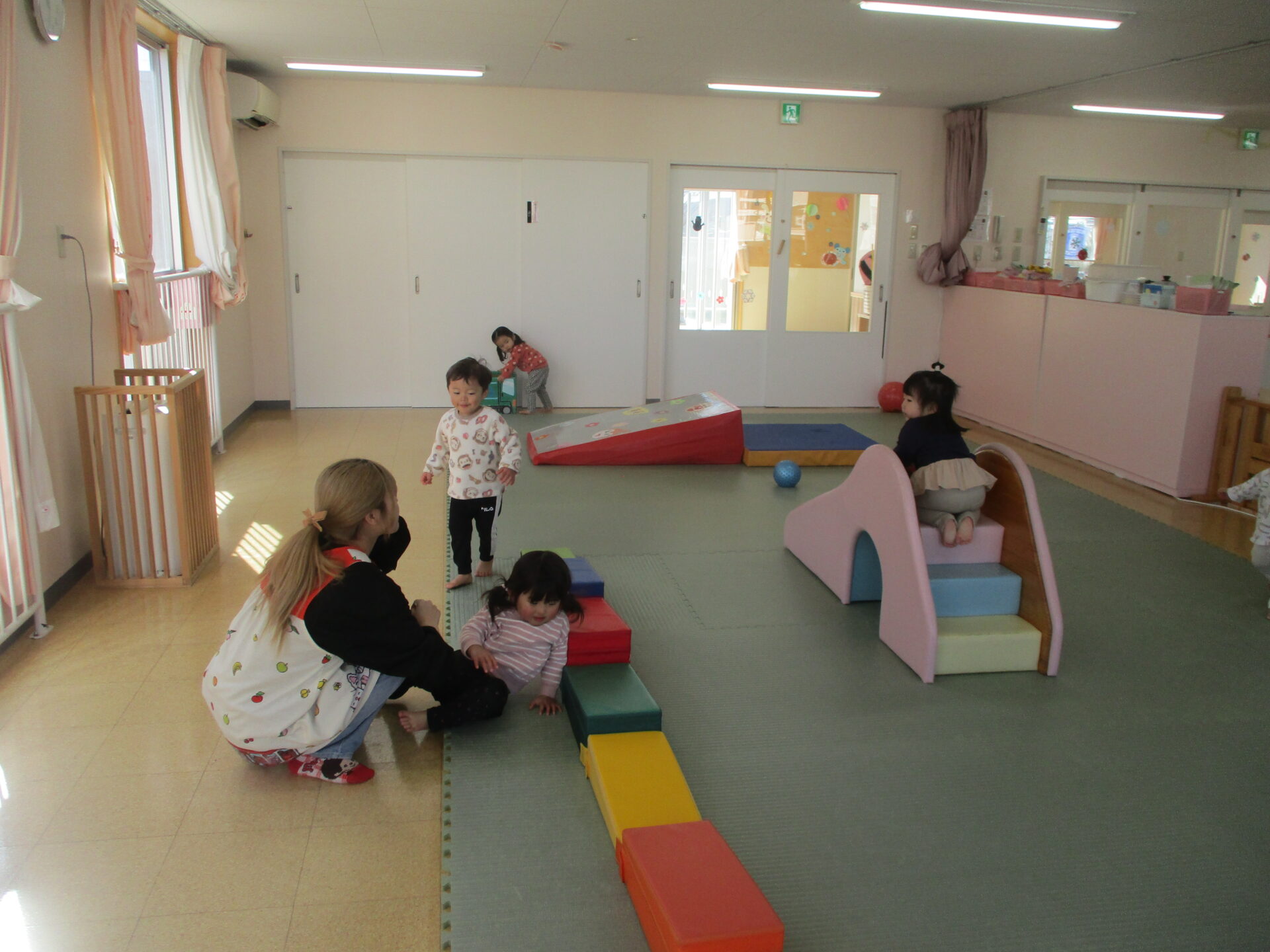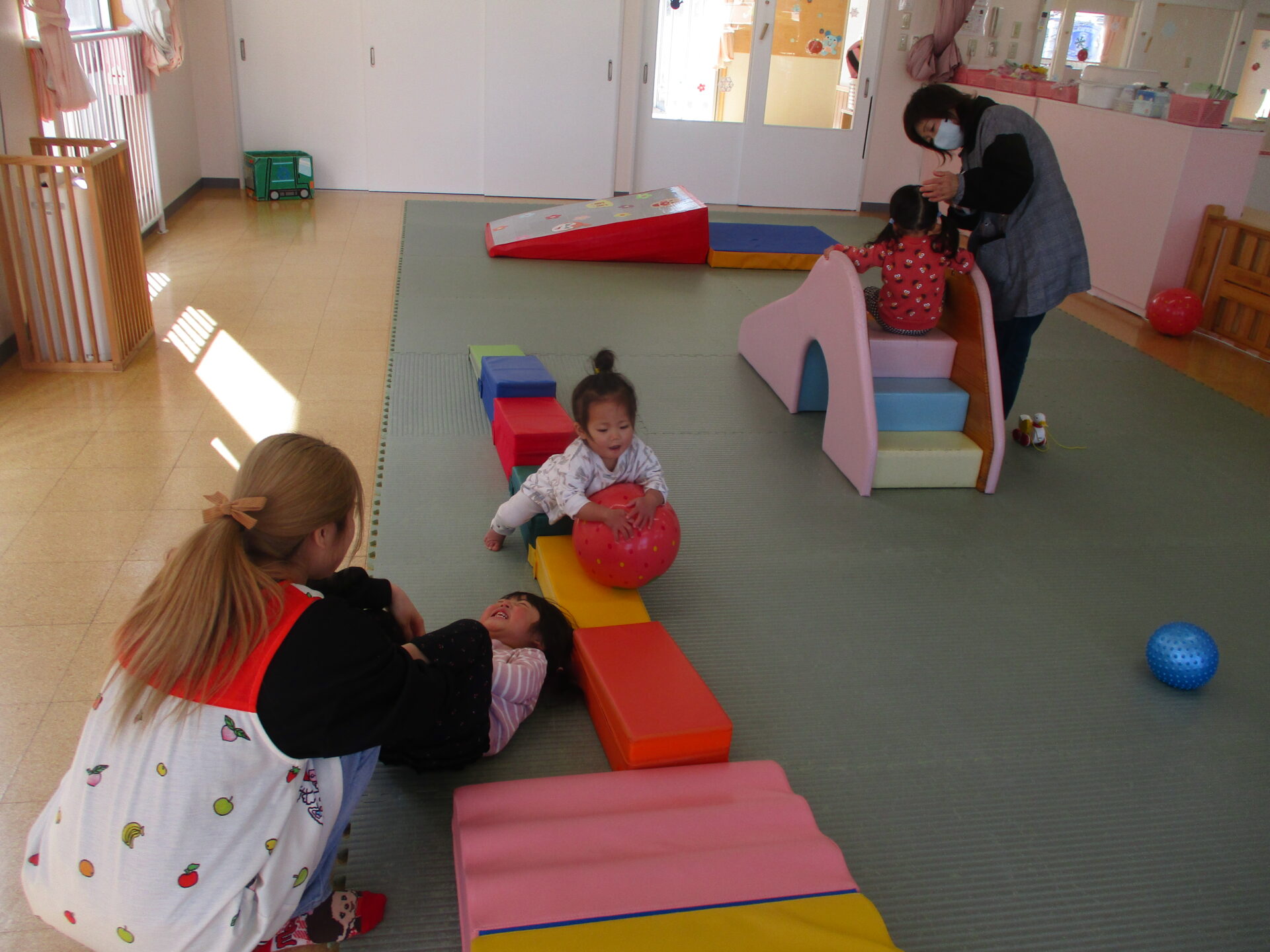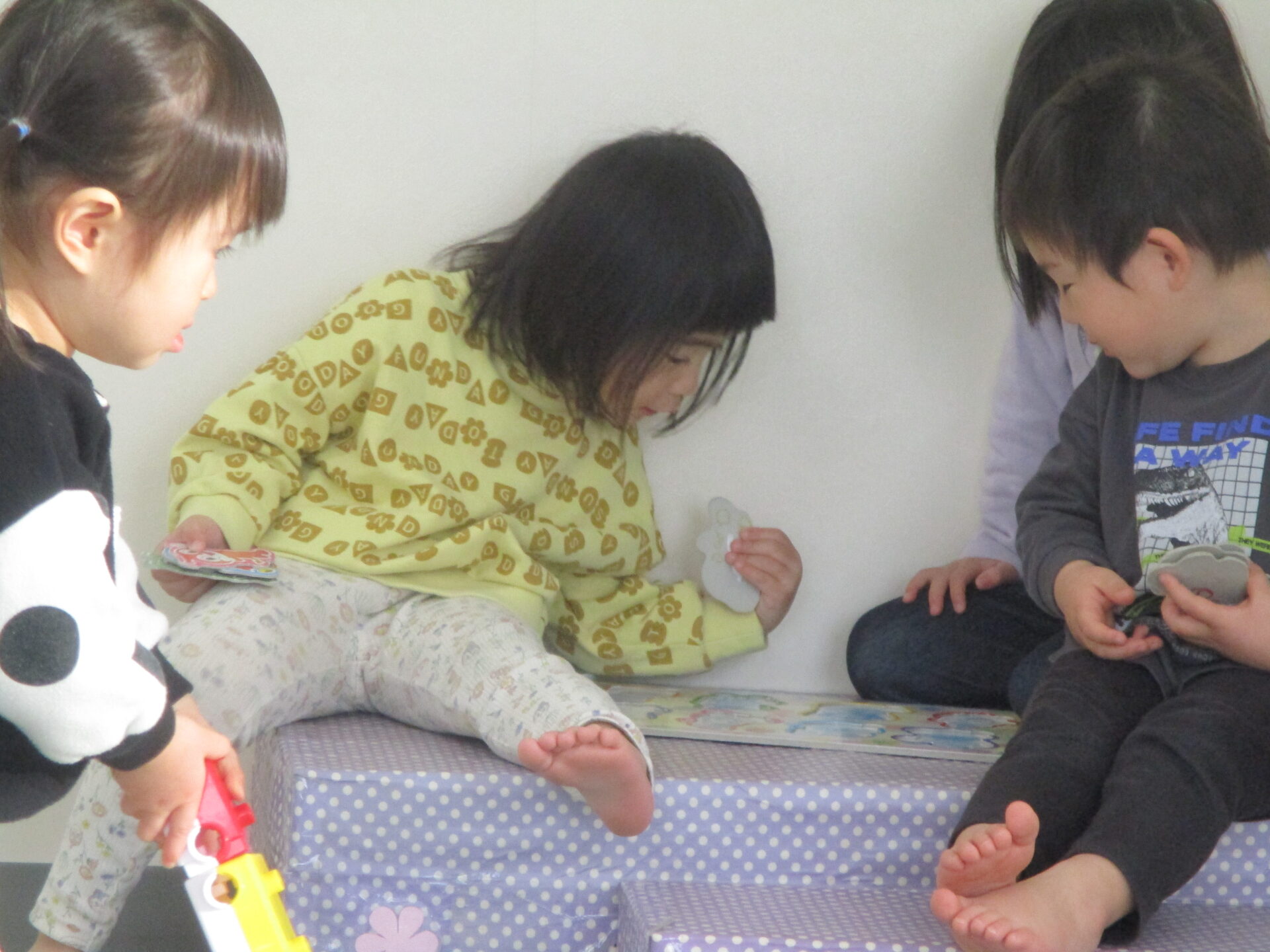 今日もかわいいお友達が遊びに来てくれました。お母さんもママさん先生として一緒に遊んでくれました。