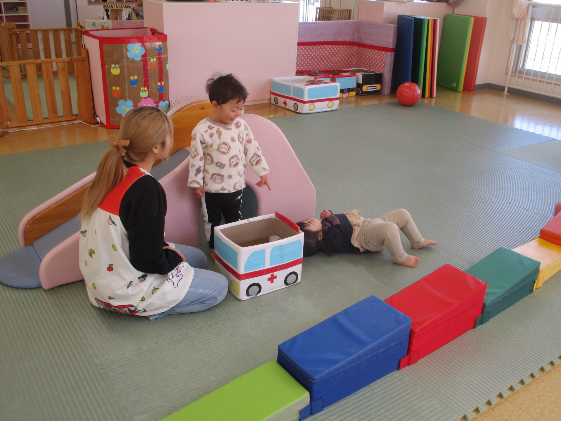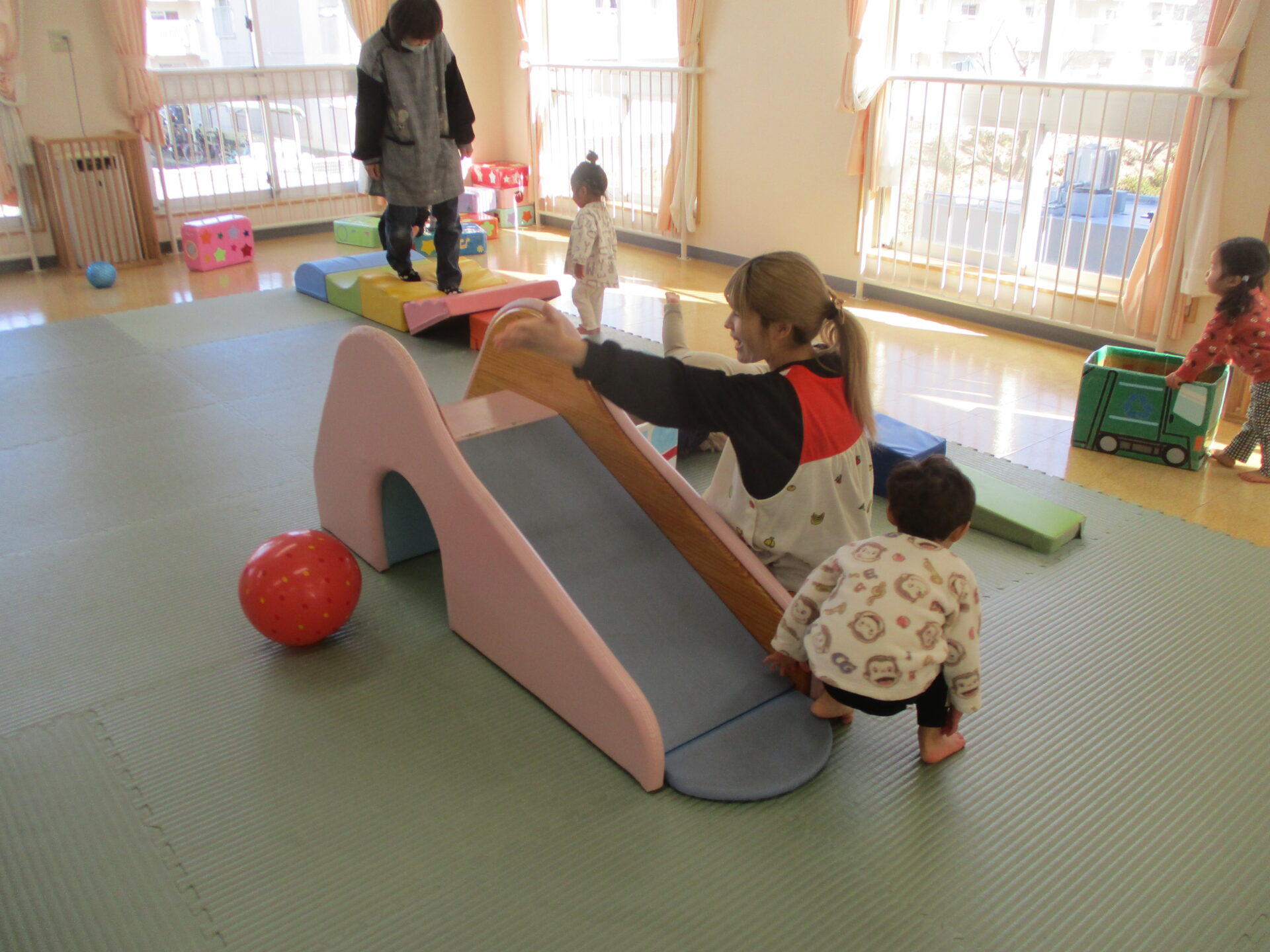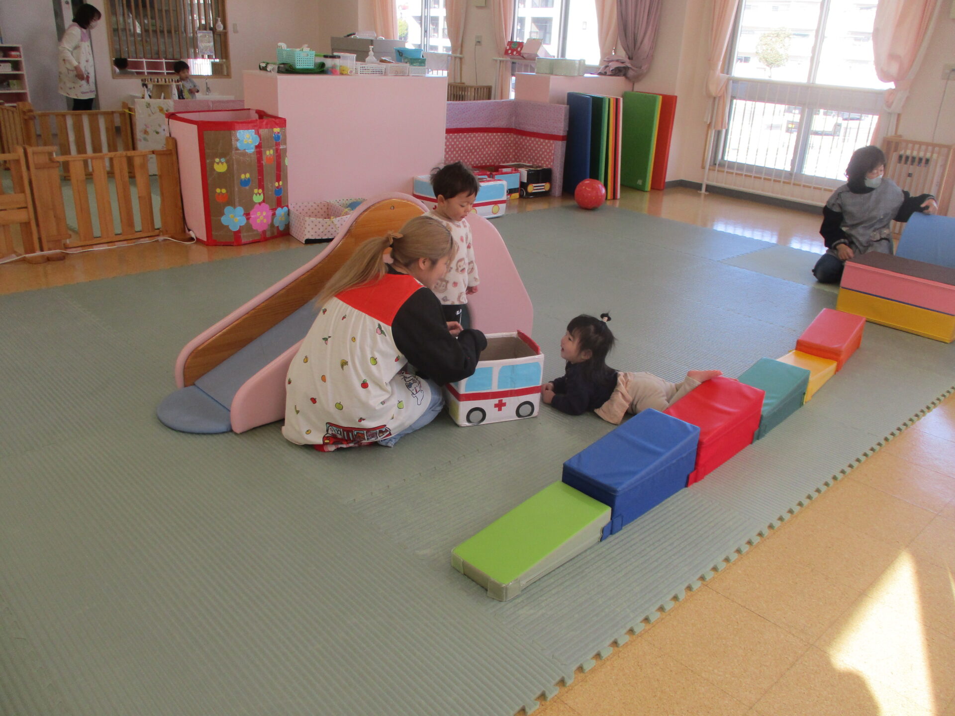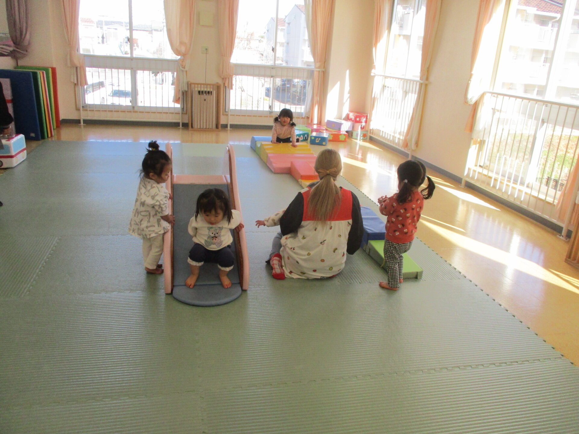 今日もかわいいお友達が遊びに来てくれました。お母さんもママさん先生として一緒に遊んでくれました。