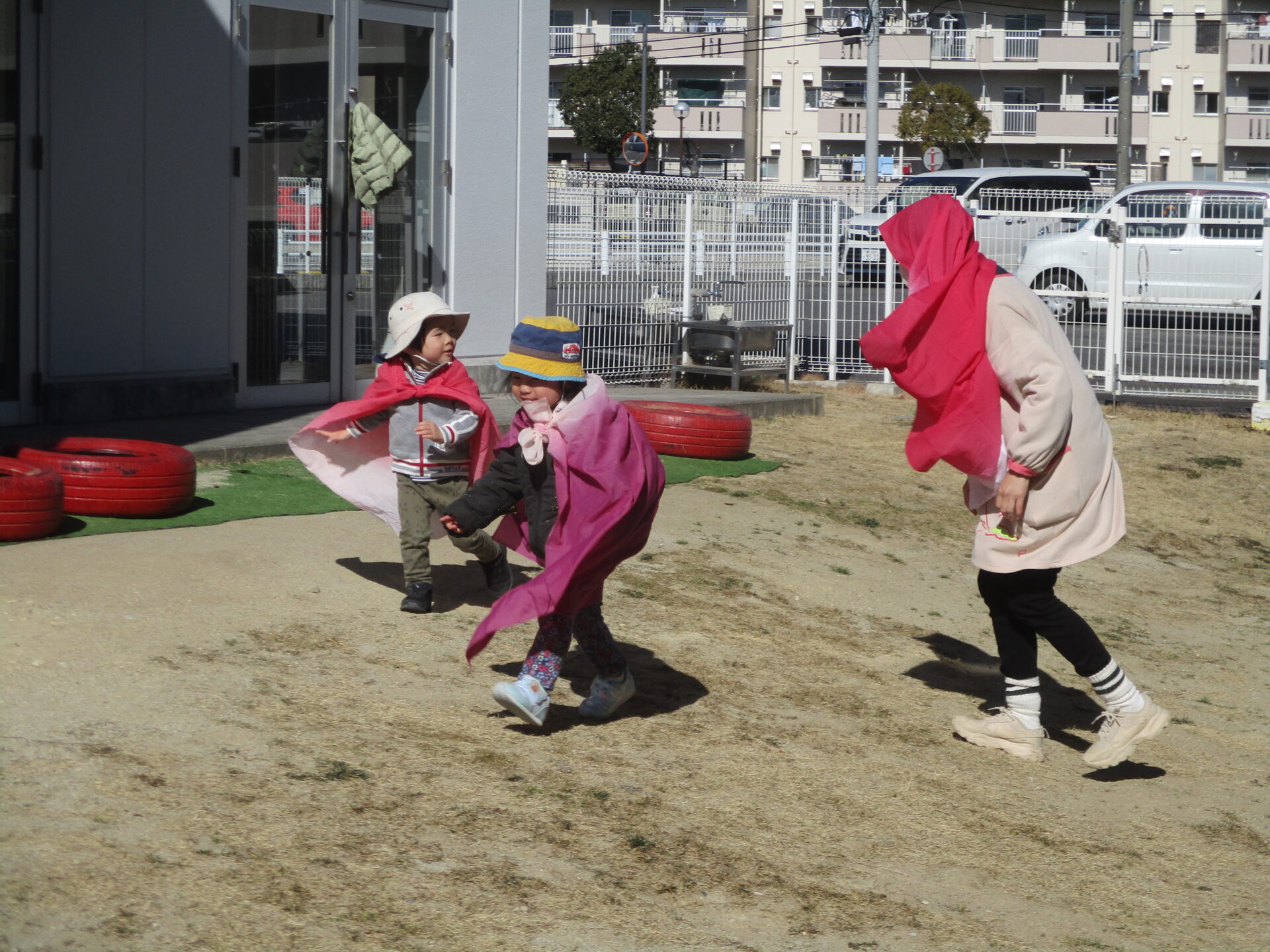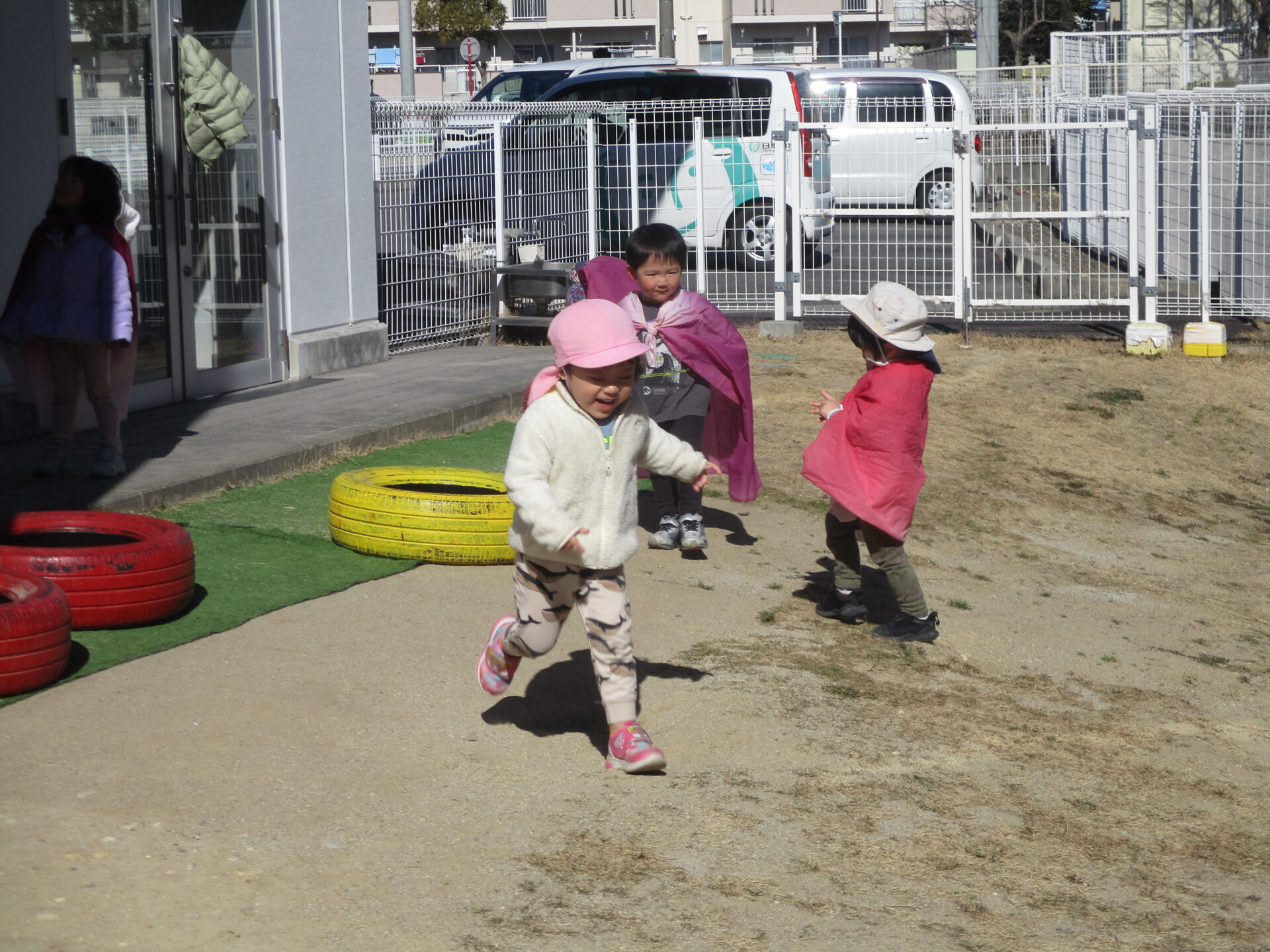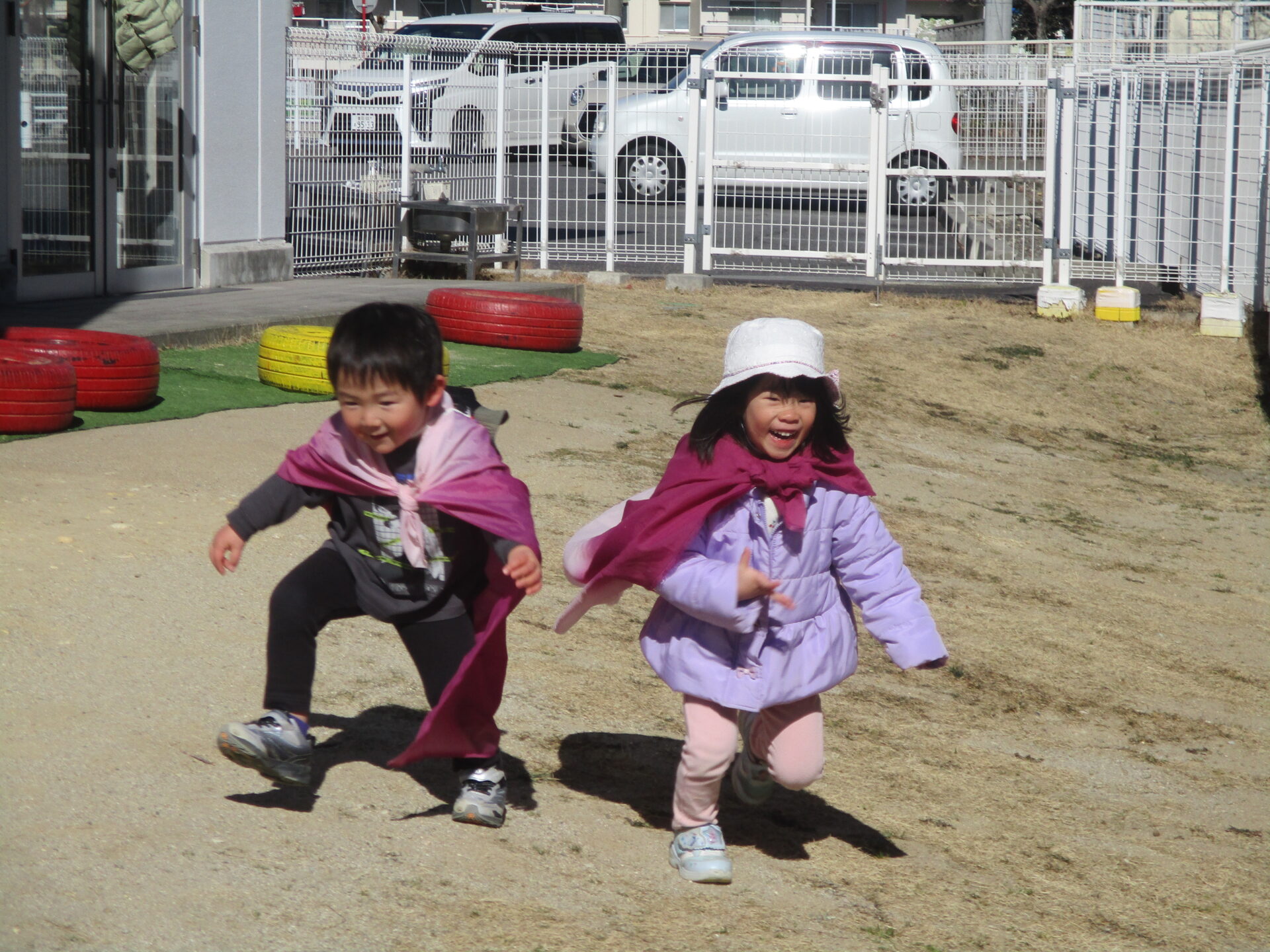 急に朝晩の冷え込みが厳しくなりましたね。昨日外でシャボン玉をしてみたら、あまりの風の強さにこんなにも早くにシャボン玉が飛んでいくのかと、おもわず笑いに変わるほどでした。穏やかなシャボン玉と違い、子ども達はダッシュで追いかけていました。北風が厳しくなるでしょうが、子ども達は外遊びが大好きです。