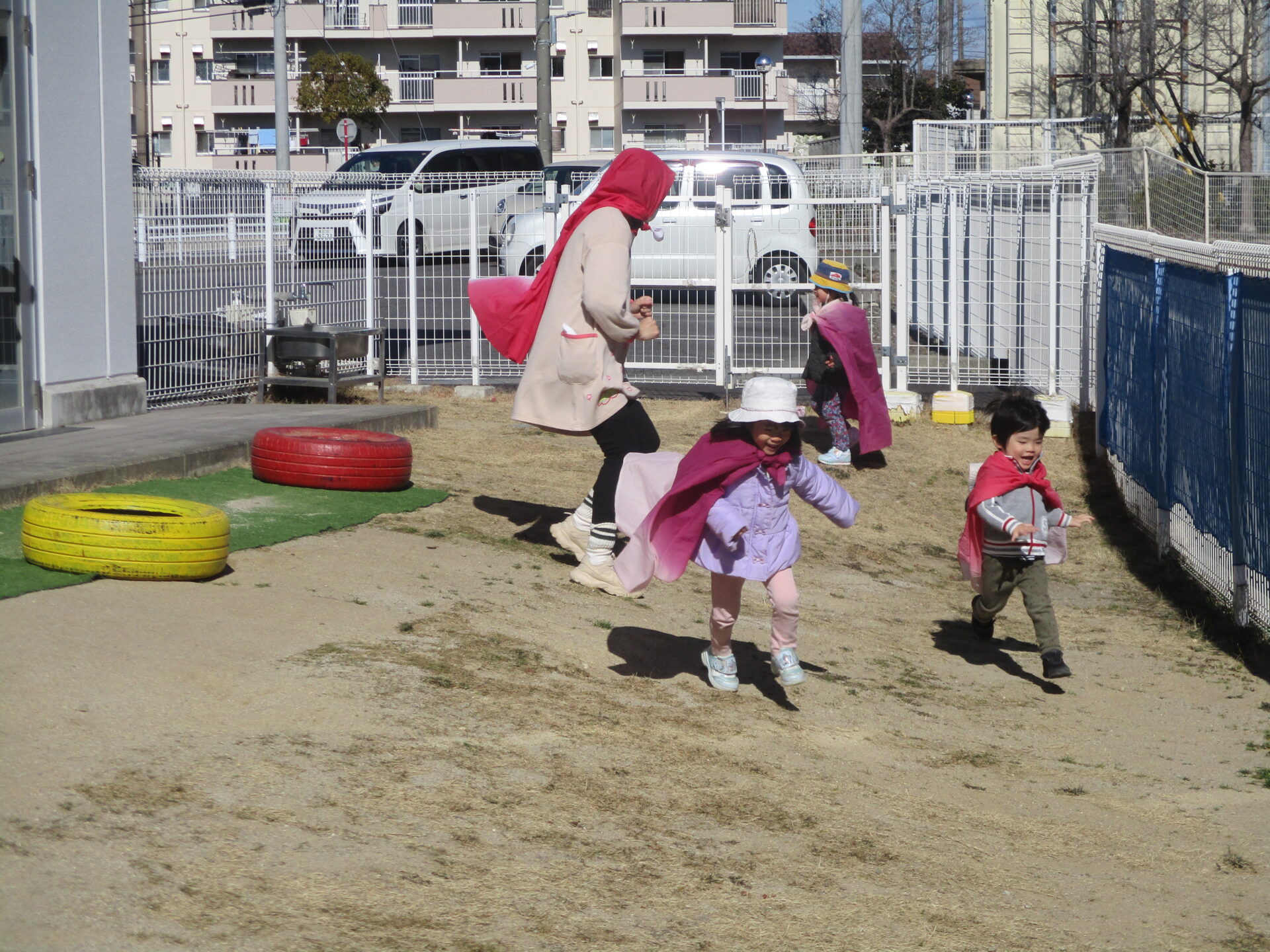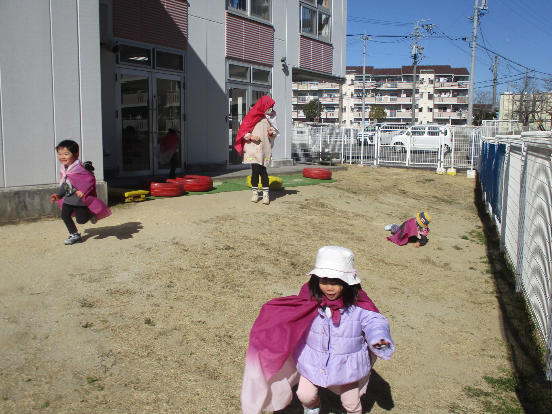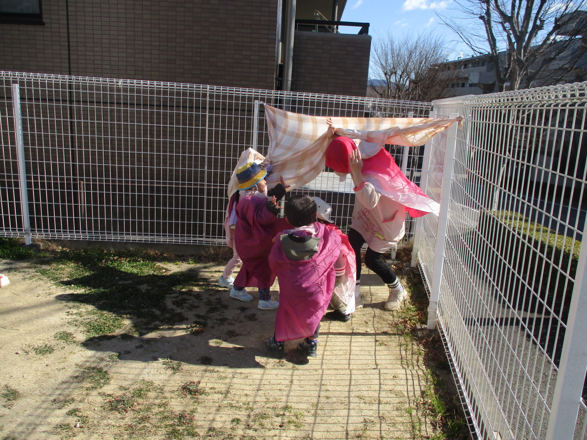 急に朝晩の冷え込みが厳しくなりましたね。昨日外でシャボン玉をしてみたら、あまりの風の強さにこんなにも早くにシャボン玉が飛んでいくのかと、おもわず笑いに変わるほどでした。穏やかなシャボン玉と違い、子ども達はダッシュで追いかけていました。北風が厳しくなるでしょうが、子ども達は外遊びが大好きです。