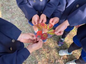 どんぐりや松ぼっくりを見つけたり、きれいに色づいた葉っぱを集めて、自然を満喫しました。