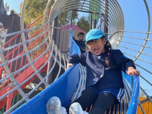 学年ごとに遊具に上ったり、滑り台で遊んだりといつもと違う遊びに夢中のこども達。