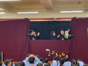 観劇会では、人形劇ころりん座の方が来園し、『トラックとらのすけ』や『屁こき嫁』などを上演してくれました。