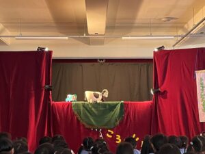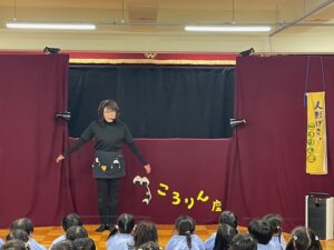観劇会では、人形劇ころりん座の方が来園し、『トラックとらのすけ』や『屁こき嫁』などを上演してくれました。