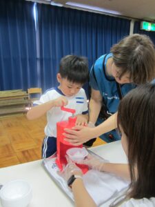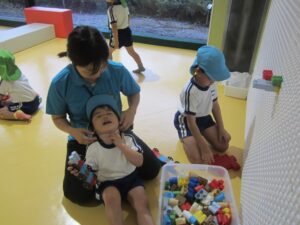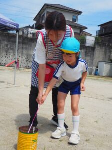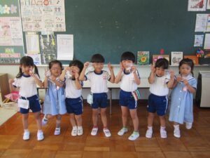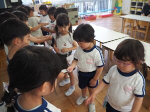 いつも一緒のお友達ではなく、年長・年中・年少ごちゃまぜのチームです。