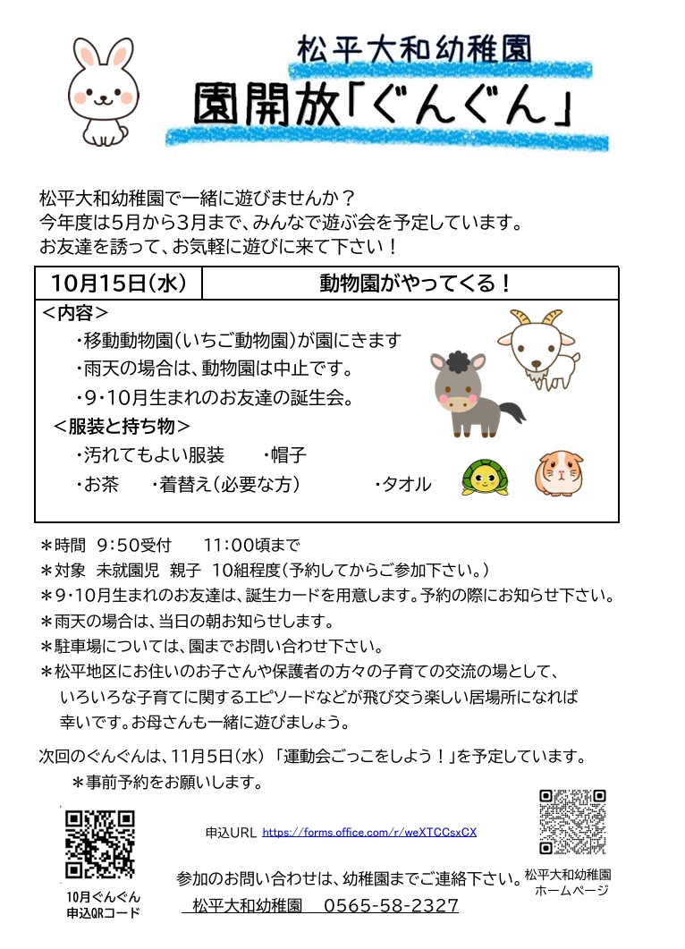 【園開放 ぐんぐん】 開催のお知らせ