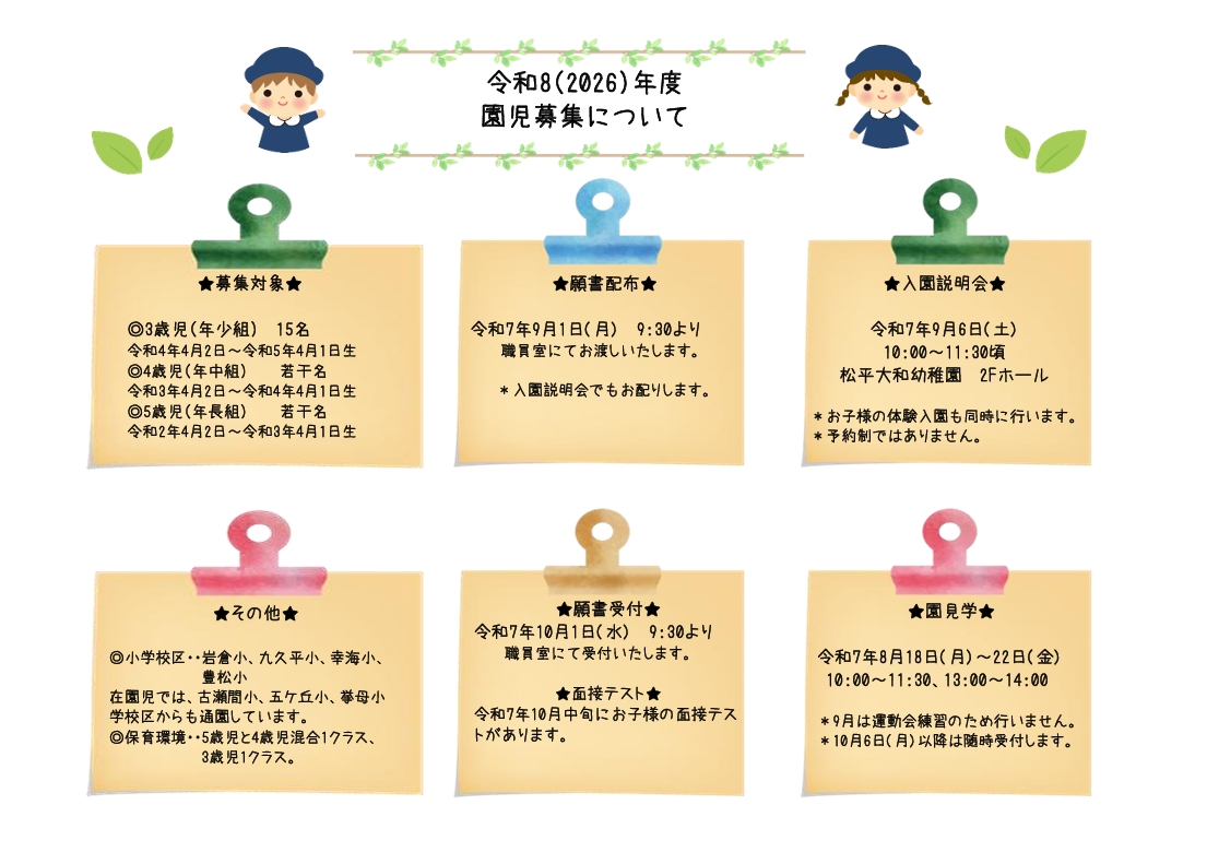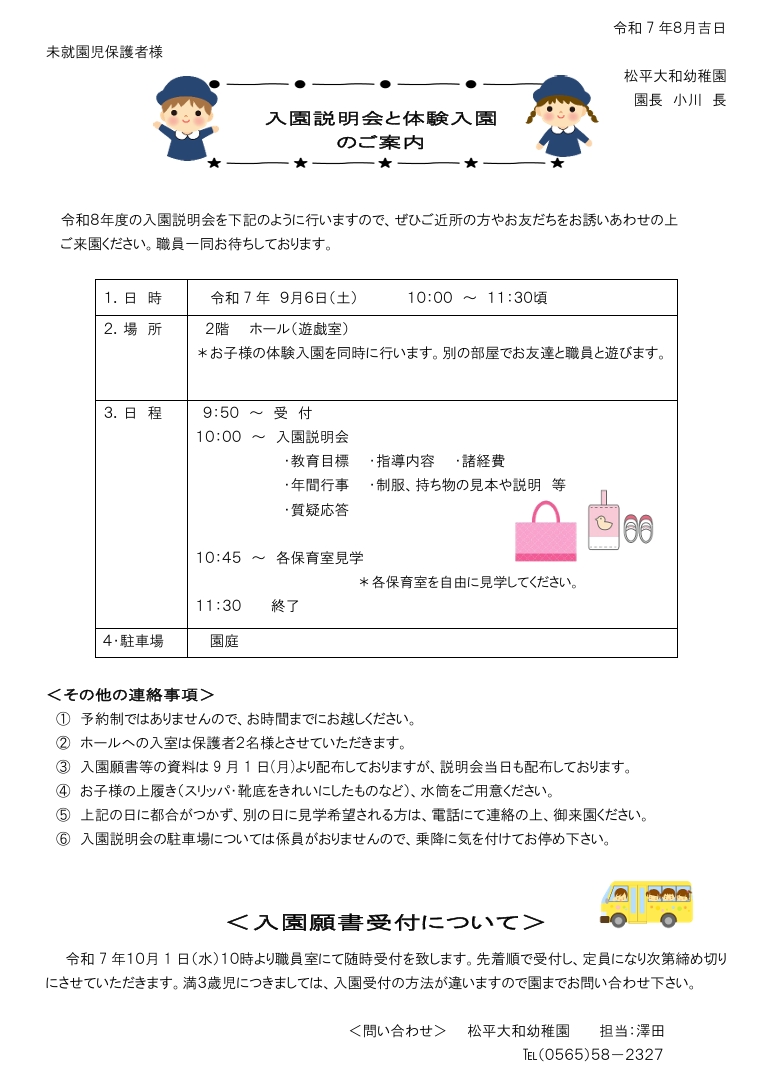 【令和8年度 入園説明会】 開催のお知らせ     *終了しました