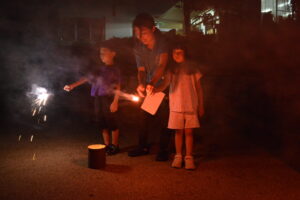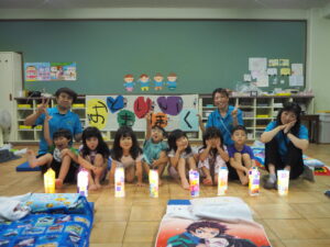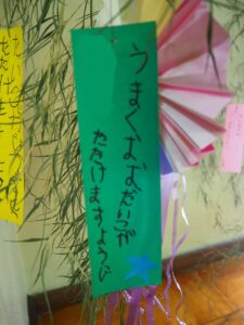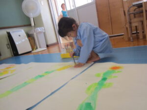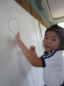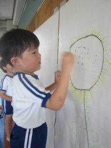 年長児が「まつだいらだいわようちん」と一文字ずつ書きました。