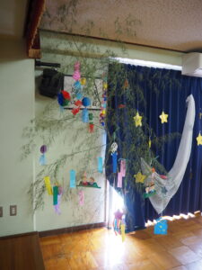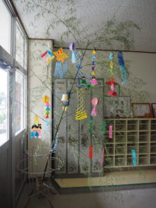 子どもたちが、楽しみながら一生懸命作った作品を飾ると、普段の保育室がワクワクする空間になりました。