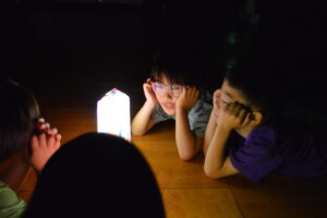 いつもと違う雰囲気の中で聞く、優しいお母さんの読み聞かせに釘付けの子ども達たちでした。