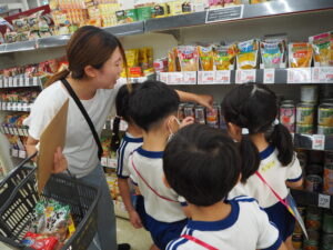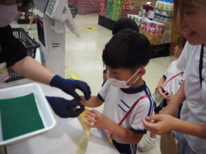 年長児が店員になってもてなしてくれました。年中児も年少児もお客さんになって楽しみました。