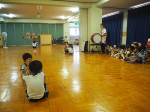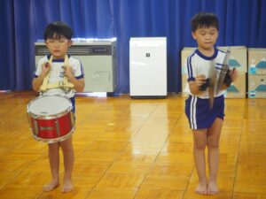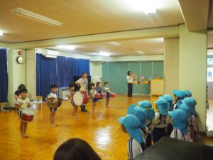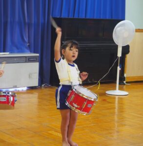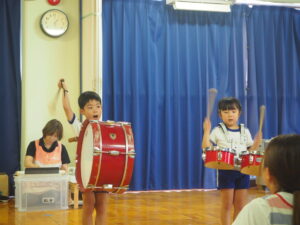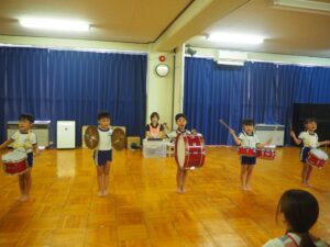 2日(日)に交流館祭があり、年長児が鼓隊演奏で出演しました。