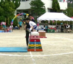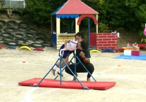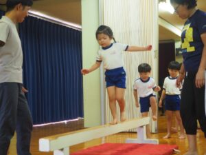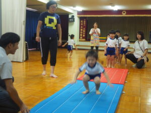 <体育発表> 年中児・年長児による体育レッスンのマット・鉄棒・とび箱披露