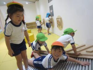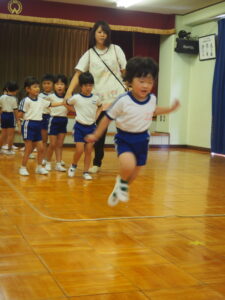 「体育遊び」では、専任の体育講師が、マット運動・集団ゲーム等、体育活動を通して体力づくりをします。