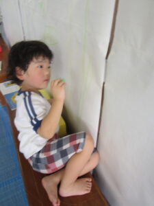 年少さんは幼稚園でお留守番していました。