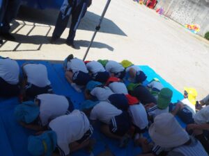 頭を守る行動が大事であることを覚えます。みんな真剣に取り組むことができました。