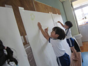 鼓隊で演奏した曲の歌詞をもとに、年少児が「虹」、年中児が「世界の国旗」
