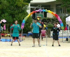 今年は「ダンシングヒーロー」の曲に合わせてダンスと玉入れを交互に行いました。