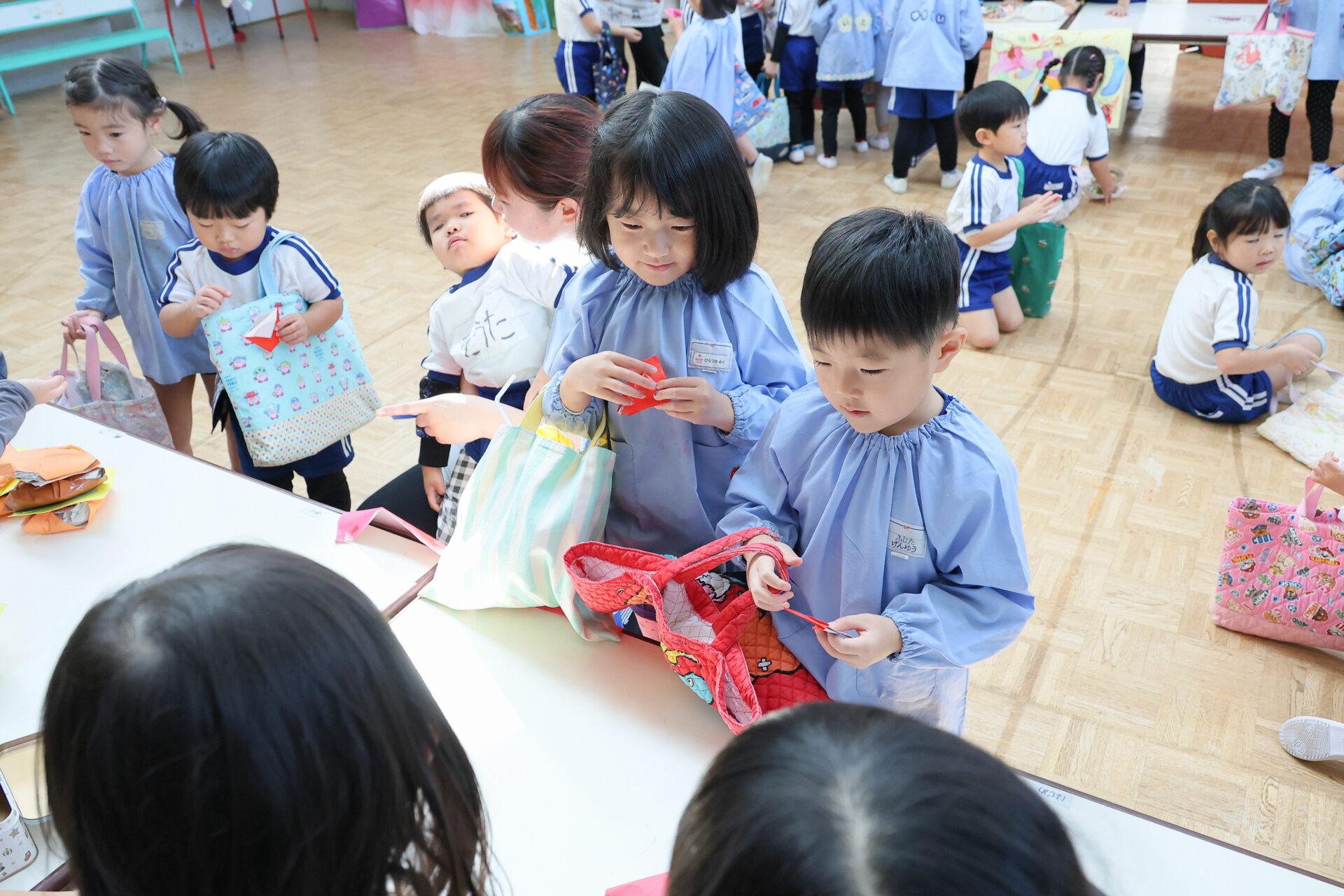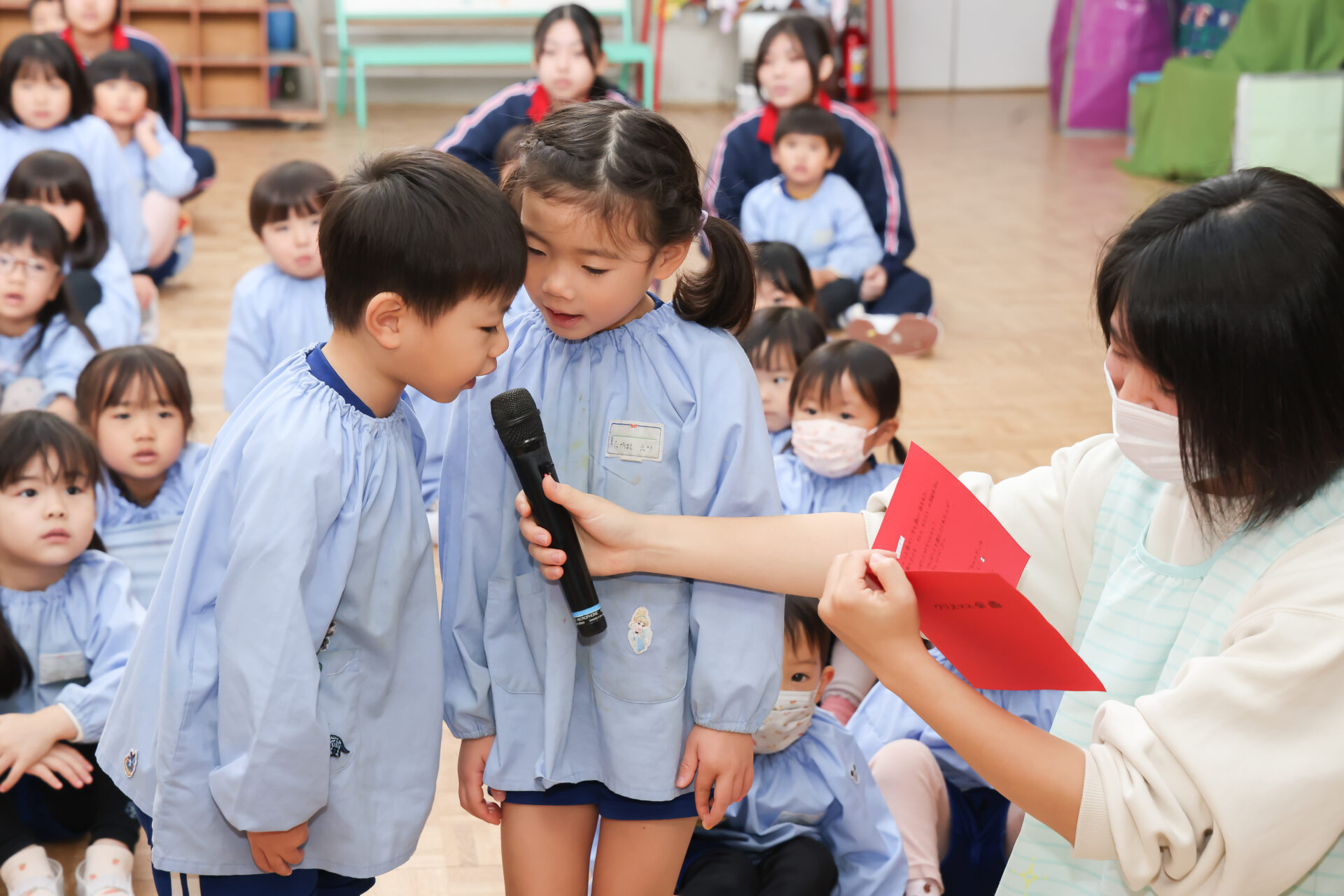 年中組さん・年少組さんはペアになってお客さん役です。