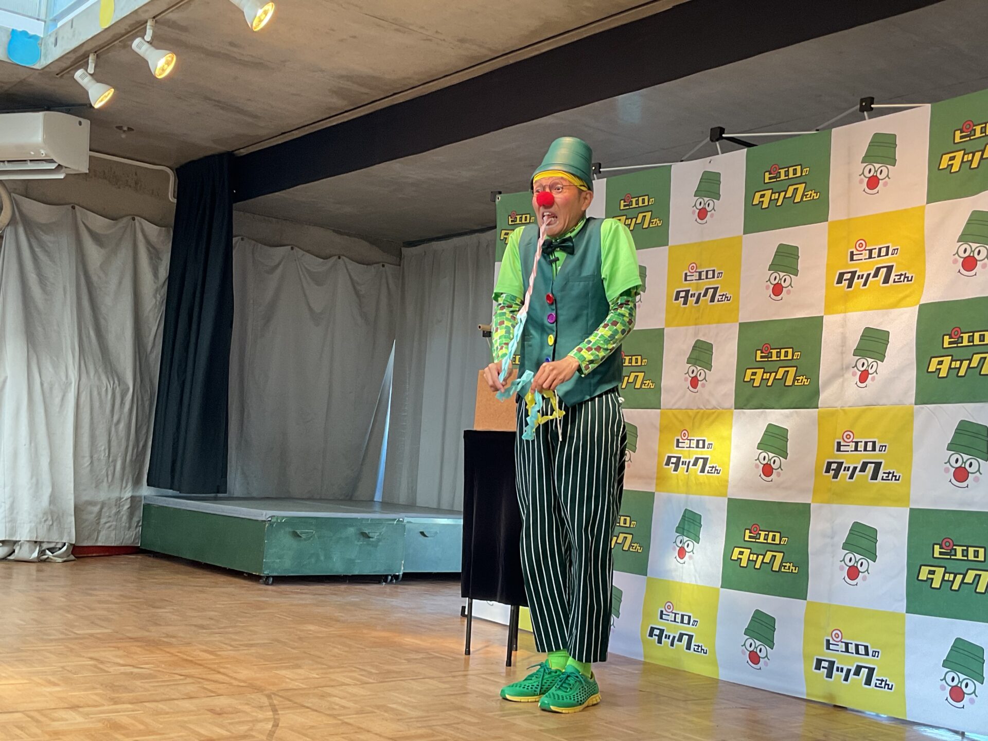 愉快な音楽とともにタックさんが登場すると、子どもたちは手拍子をしながらノリノリに。次から次へと繰り出される楽しい芸に大盛り上がりで、最初から最後まで笑顔と笑い声があふれていました。