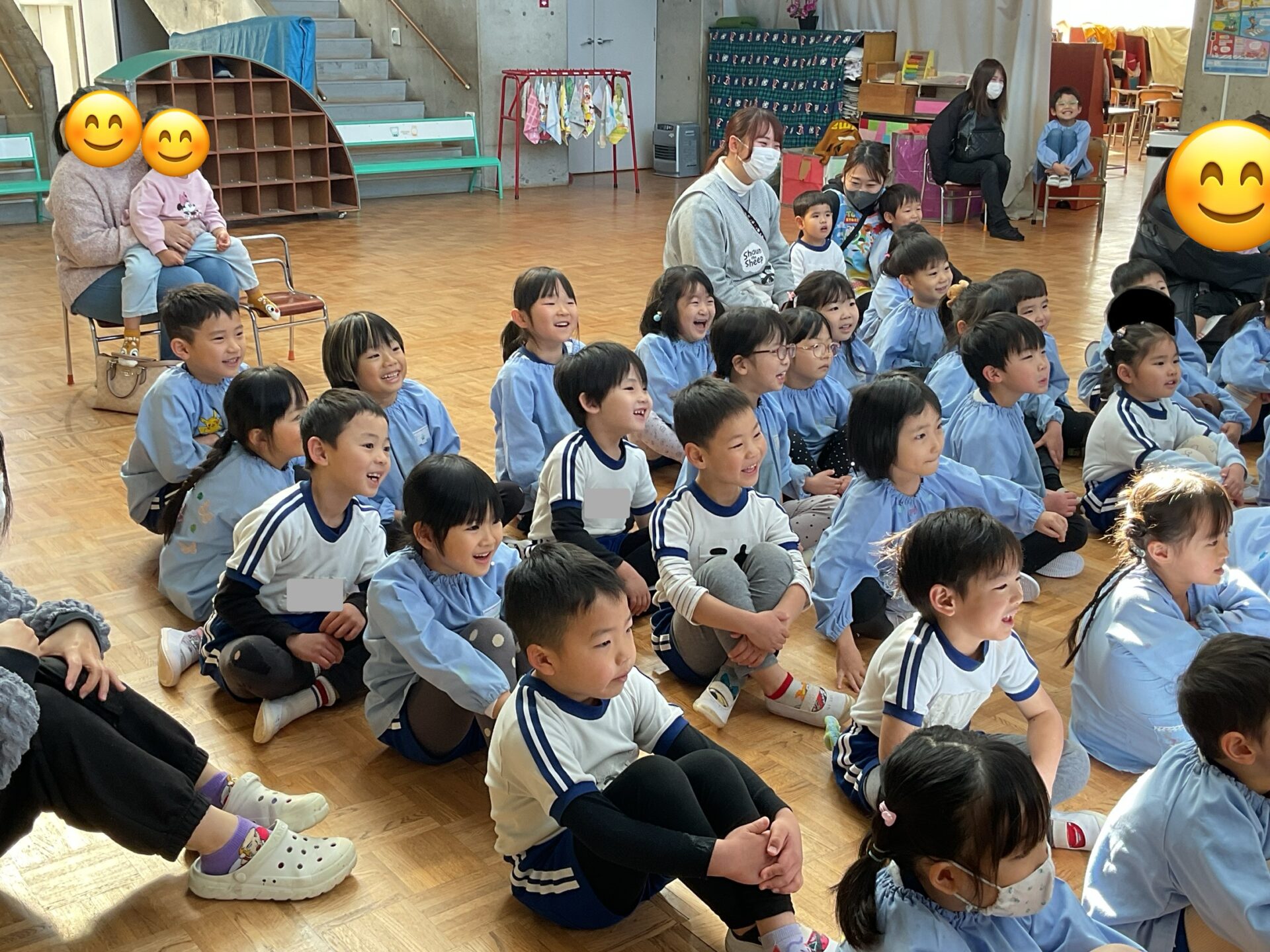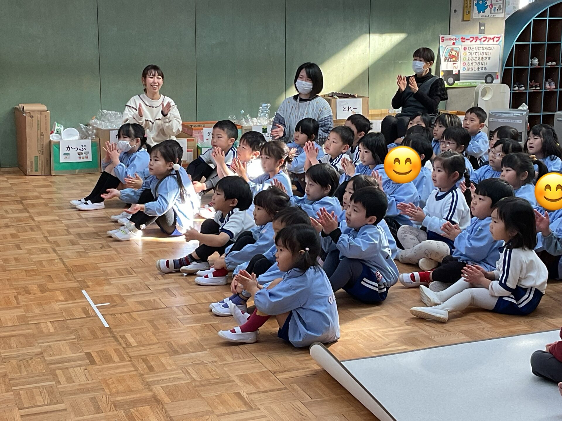 幼稚園みんなで迎えた初笑い。とても楽しいひとときとなり、今年も良い一年が過ごせそうです。