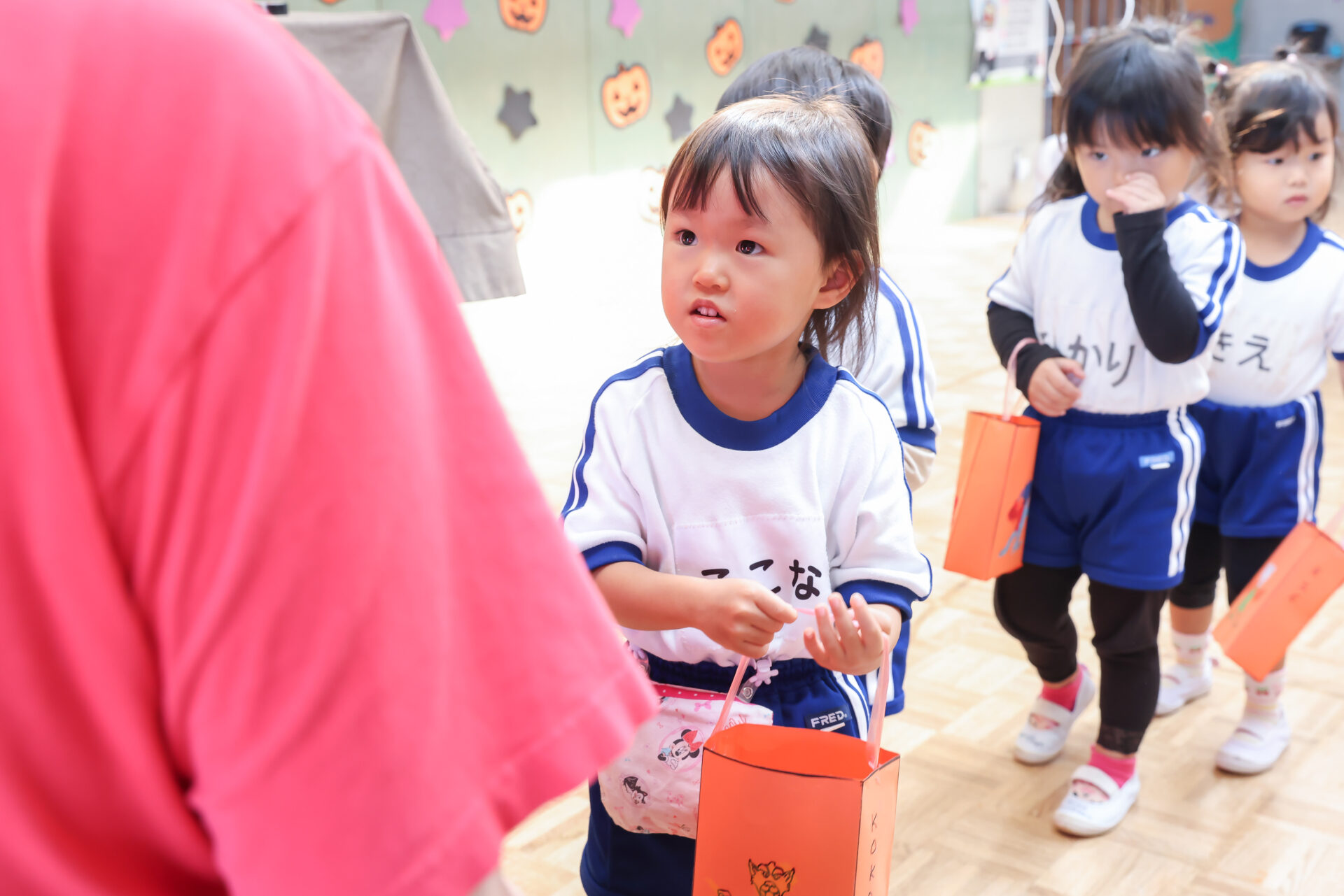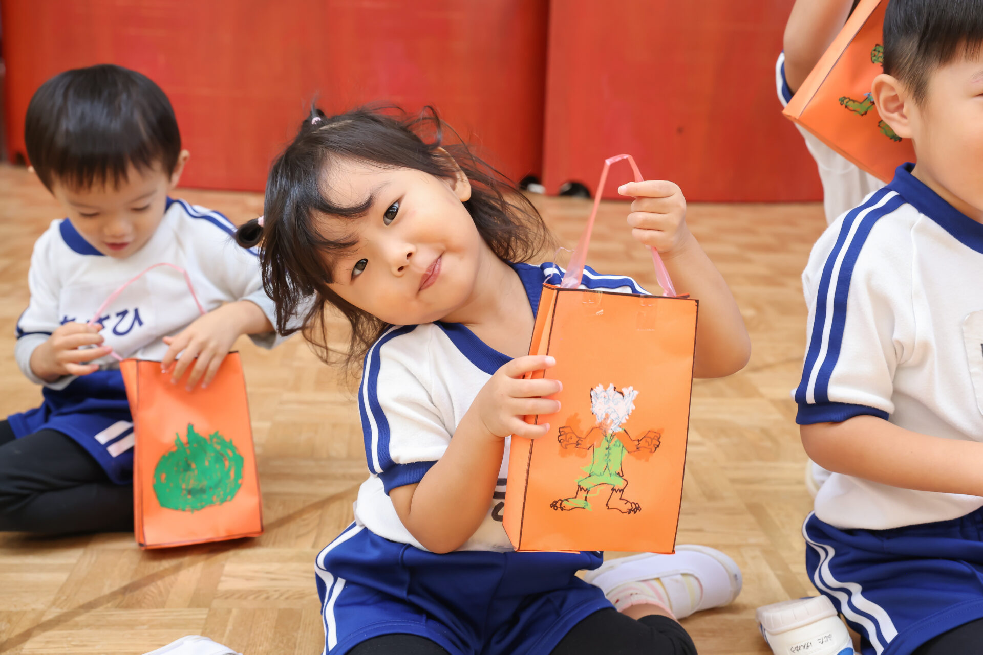 事前に作ったハロウィンバッグを持って、ホールに集合!